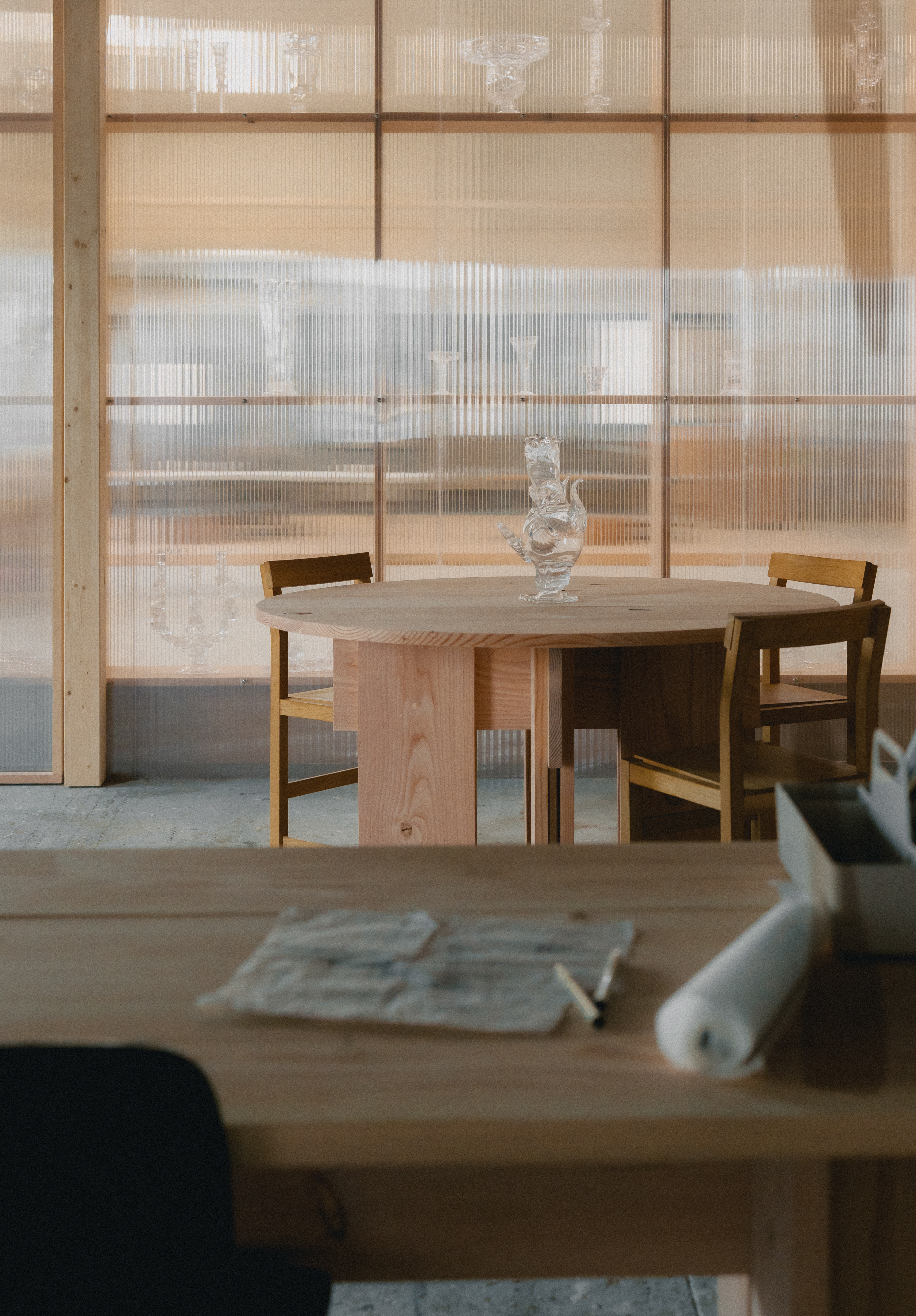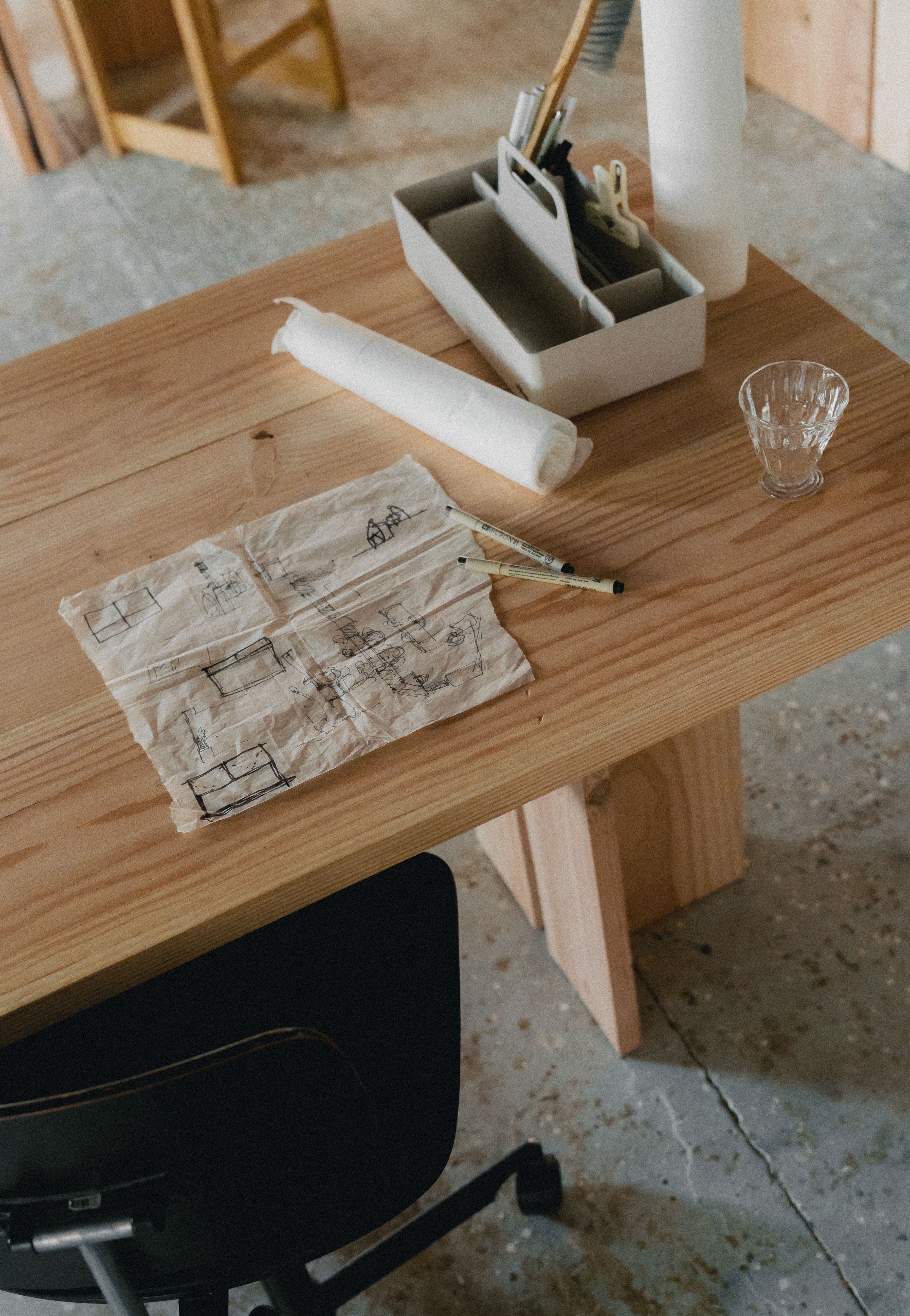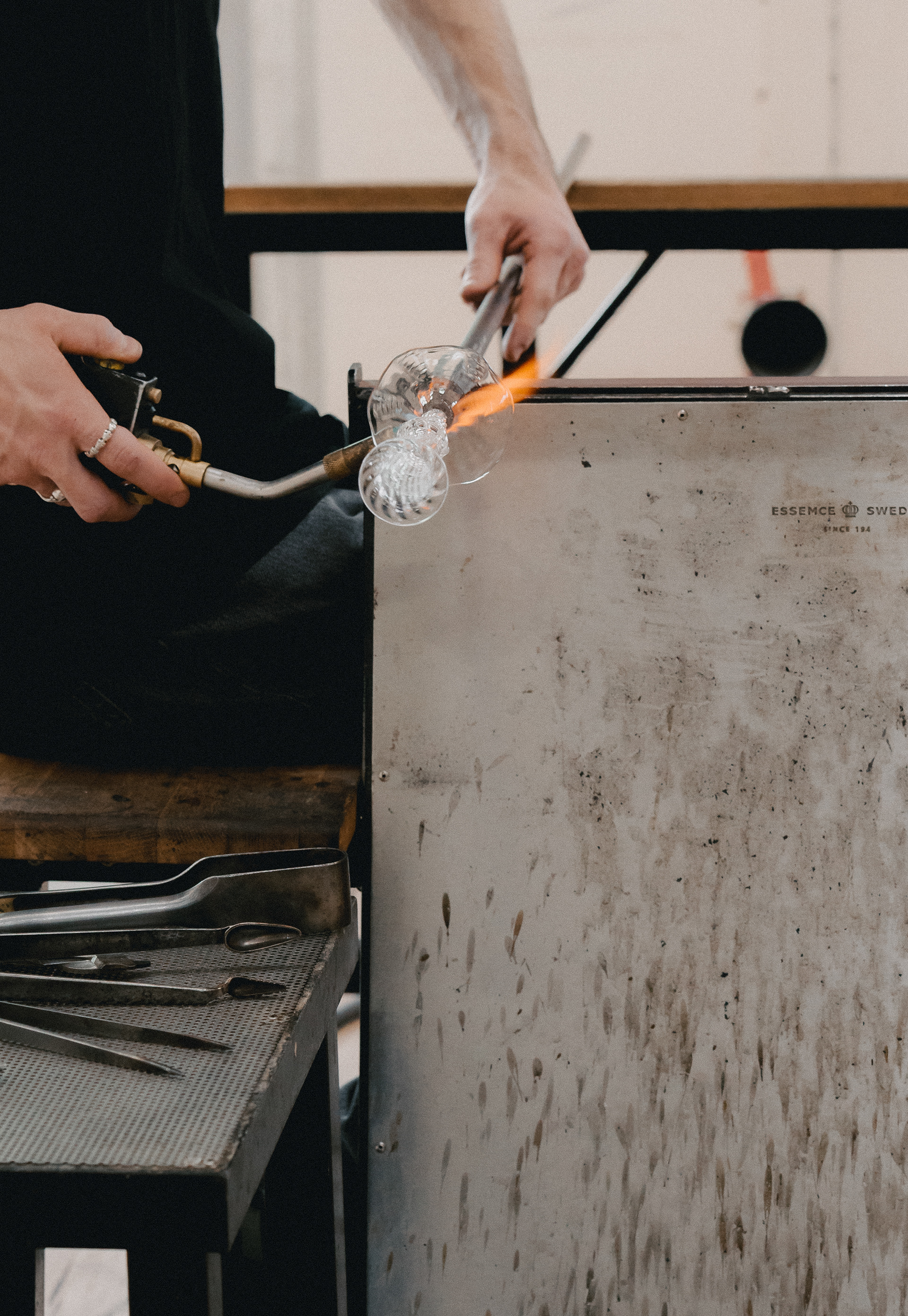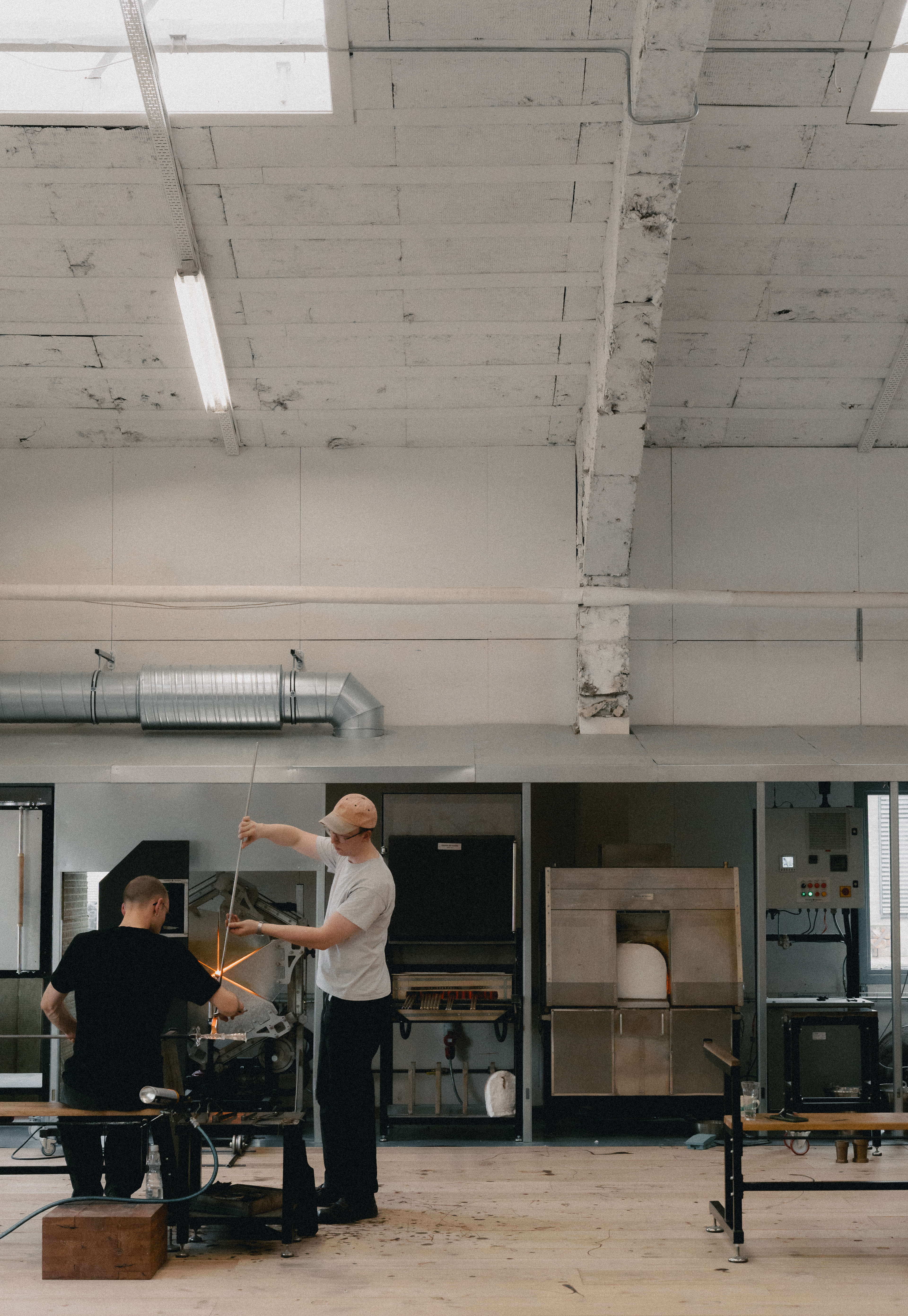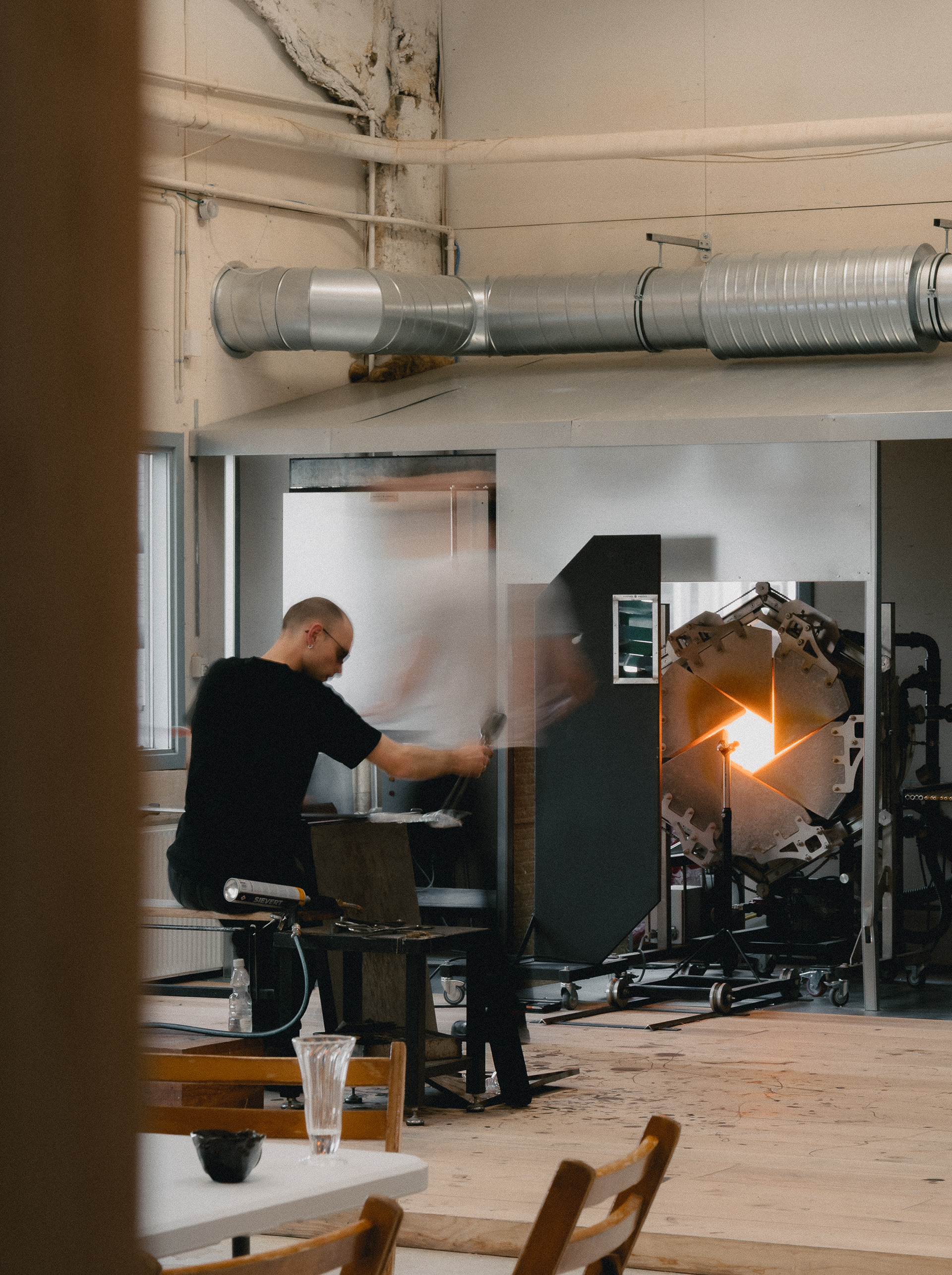Vi har fået den spændende opgave at designe og realisere et nyt studio for og sammen med den dygtige glaspuster Alexander Kirkeby i et tidligere snedkerværksted på havnen i Aarhus.
